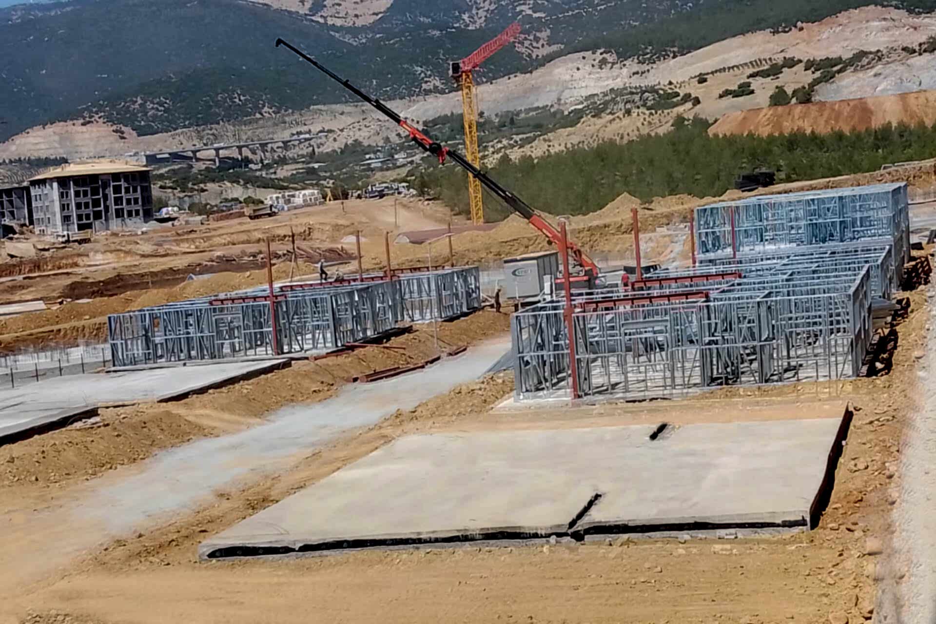 Gaziantep / Nurdağı ve Malatya / Battalgazi, her ikisi de eş zamanlı olarak hem sevkiyatı hem de montajı devam eden deprem bölgesindeki toplu konut projelerimizdendir.