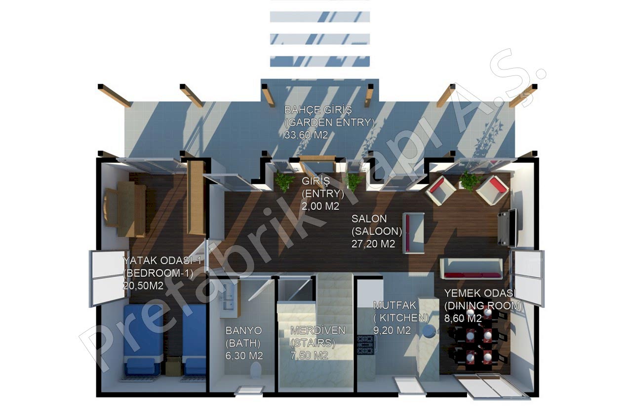 Zemin Kat Plan 1.5 Katlı Villa