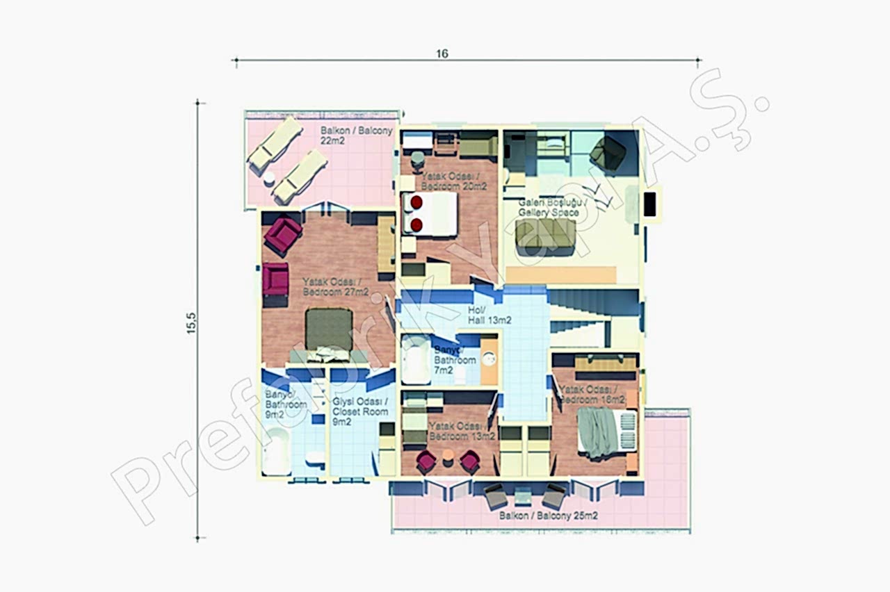 Çatı Katı Plan Amerikan Mimarisi Villa