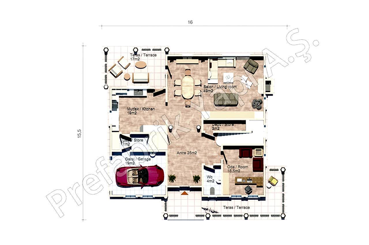 Zemin Kat Plan Amerikan Mimarisi Villa